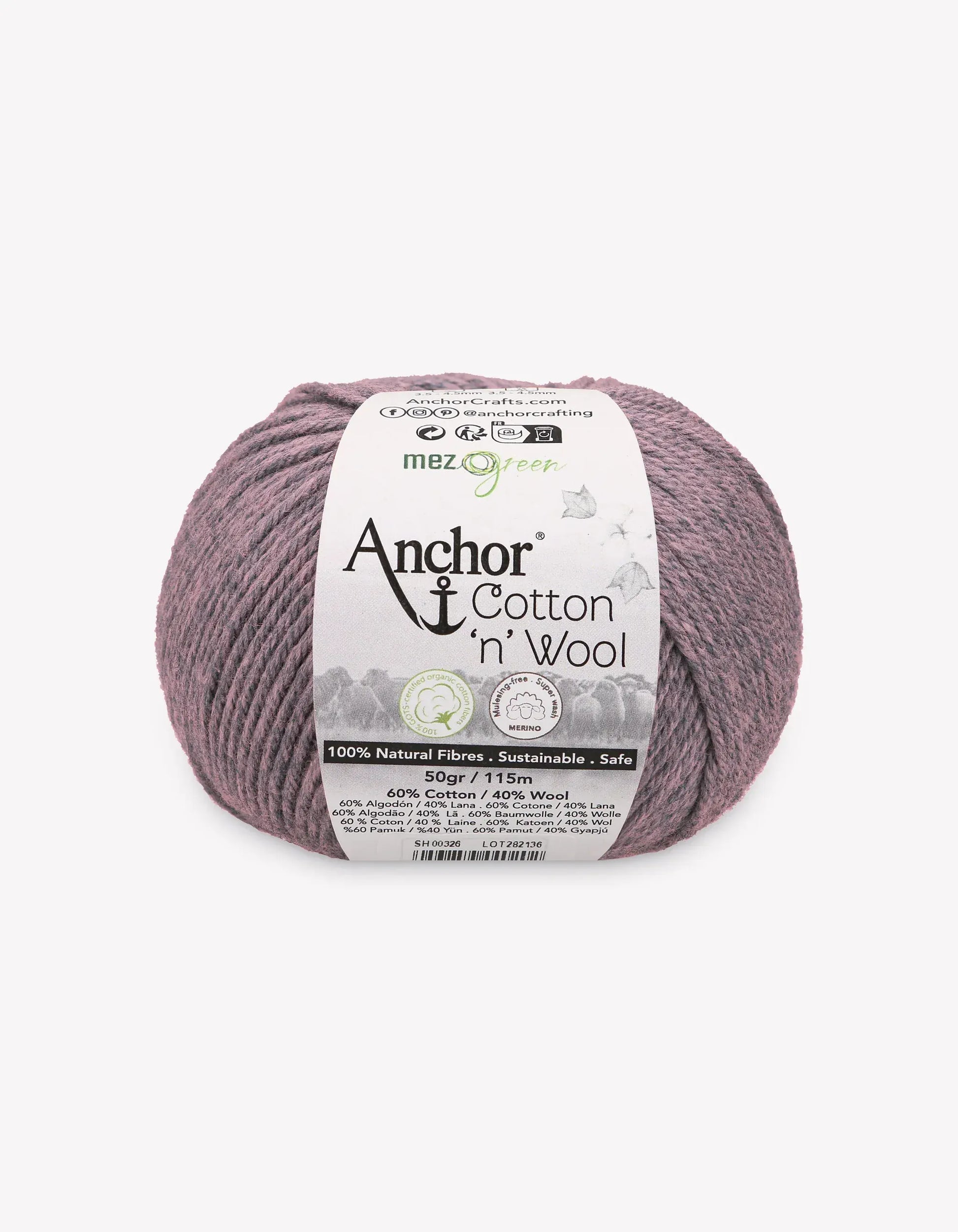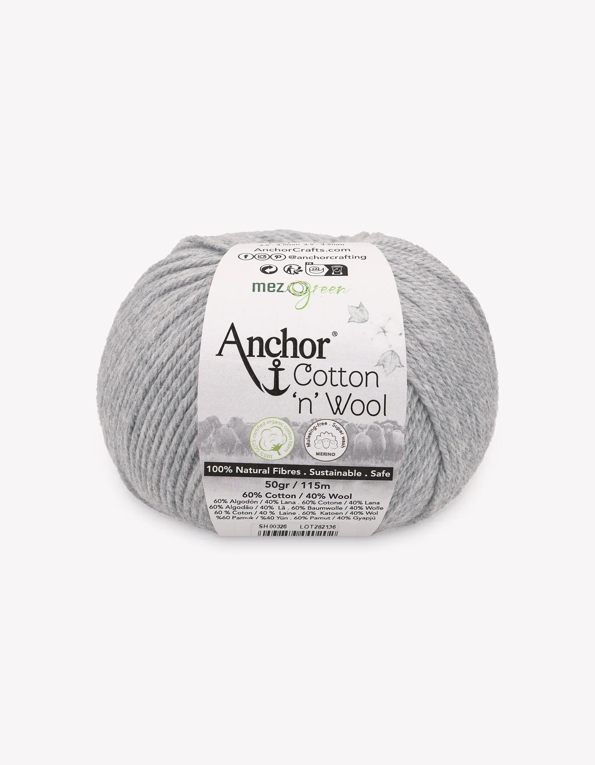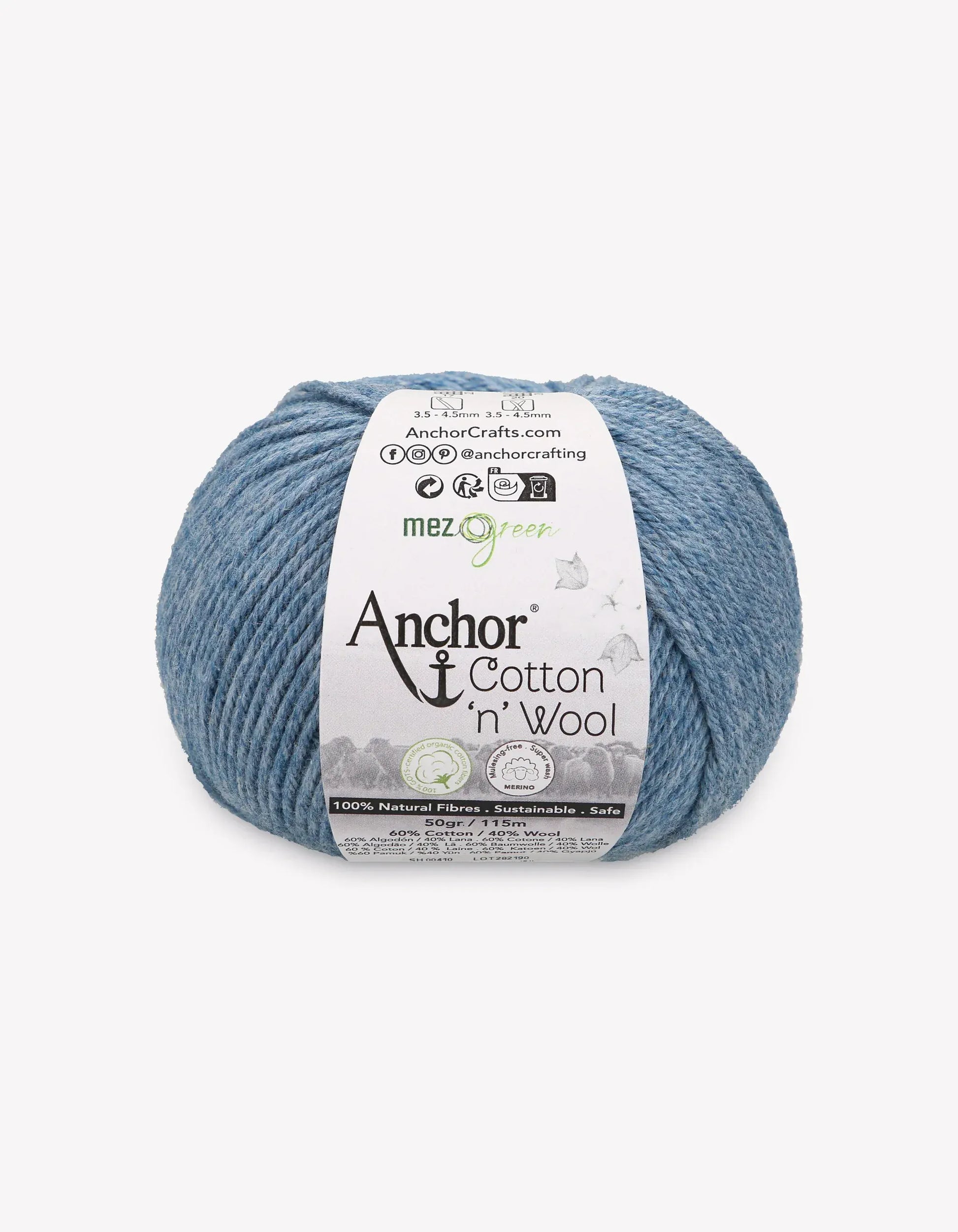 Anchor Cotton ‘n’ Wool is a 4-ply, sustainable and durable yarn created for eco-conscious crafters. Made from 60% organic cotton and 40% organic mulesing-free super-wash merino wool.