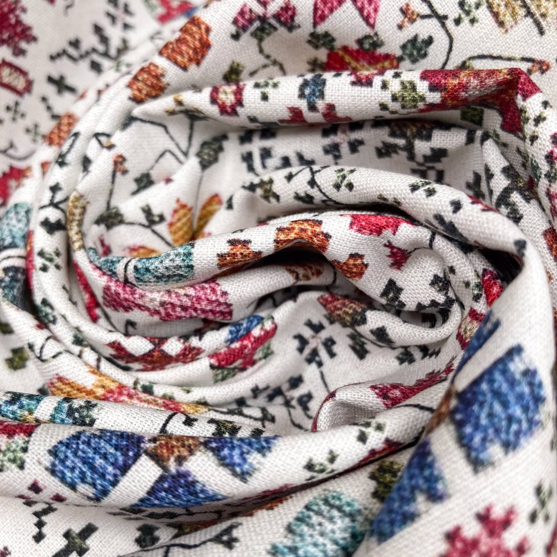 A good quality classic quilter's weight cotton with a very realistic-looking tapestry print which has been printed with a 3D effect.