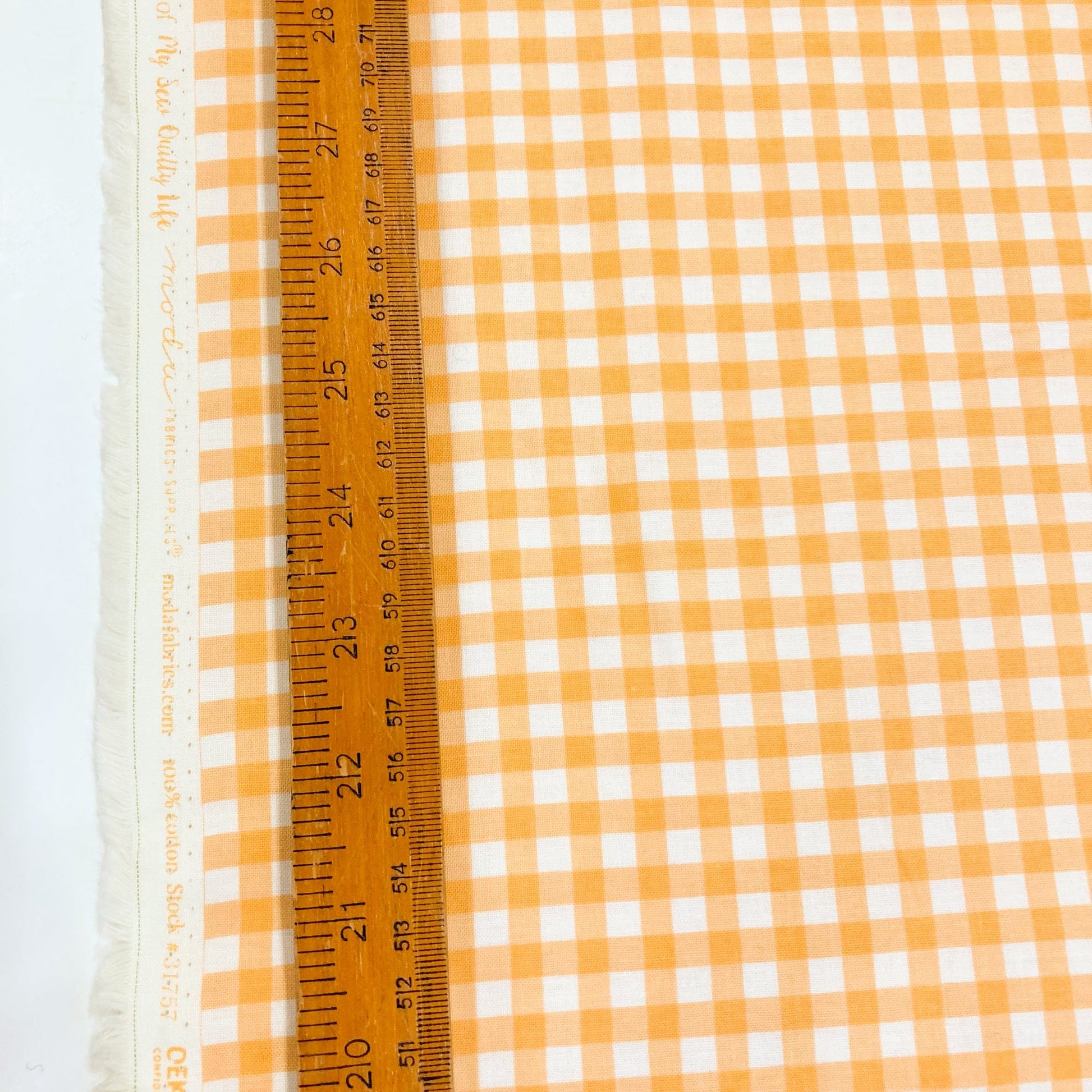 From the collection 'Cottage Charm' by Heather Briggs of 'My Sew Quilty Life' for for Moda Fabrics, this is a classic gingham print in a cheery egg yolk yellow and cream.