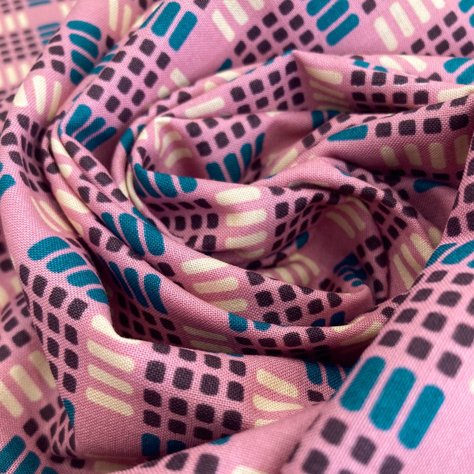 From Ruby Star Society's collaborative midcentury modern-inspired 'Geometry' collection, this is 'Parallel', a cool, retro geometric print in mauve, aubergine and teal.